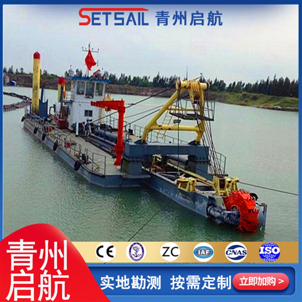 當(dāng)船遠(yuǎn)距離轉(zhuǎn)移及到無連通的水域時(shí)可將船體拆卸使用汽車或火車運(yùn)輸??膳渲脪佸^桿、臺(tái)車等裝置,絞刀驅(qū)動(dòng)裝置采用潤(rùn)滑油潤(rùn)滑,獨(dú)立定位金屬浮封環(huán)密封裝置。